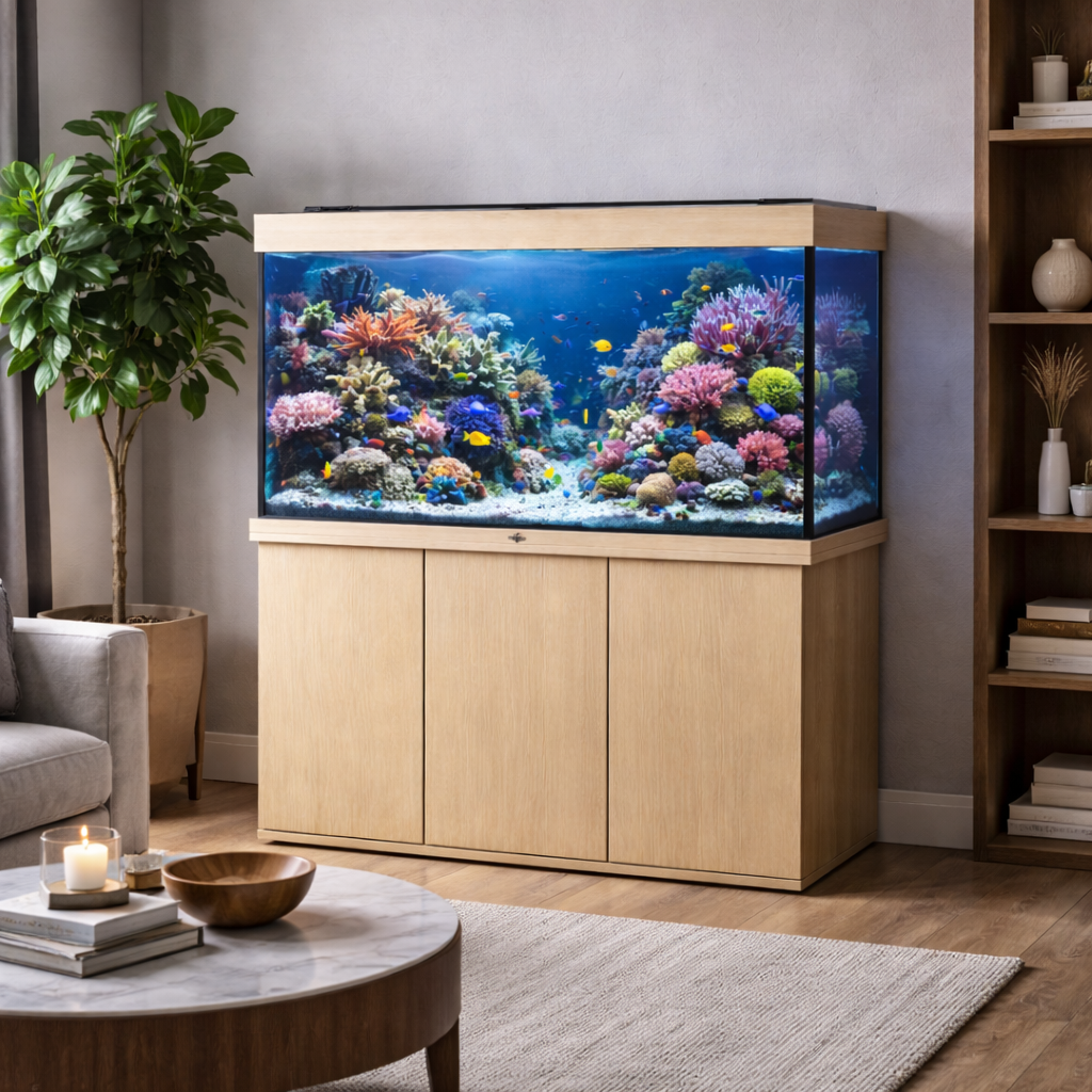 500 литров делает аквариум центральным элементом интерьера и создаёт впечатление настоящего подводного пространства. Такой формат особенно хорошо подходит для премиальных интерьеров и проектов, где аквариум должен производить сильное впечатление.